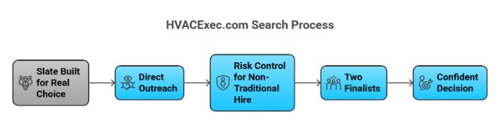 In this engagement, HVACExec delivered seven pre-qualified candidates in three weeks through relationship-based outreach. Timelines vary by role specificity and geography. The consistent principle is that a smaller slate of fully qualified candidates beats a larger list of partial fits.